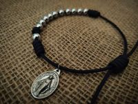 Stal nierdzewna 8 mm, paracord 2,4 mm, medalik z Niepokalaną i krzyż św. Benedykta.